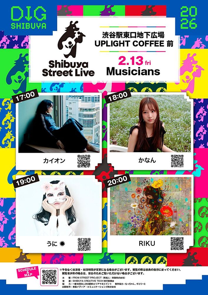 渋谷公認路上ライブ 日程表 2026/02/13(金) - 2026/02/14(土) 物販なし 中継配信あり 19:00から渋谷駅東口地下広場にて歌います!!! 地下だからあったかいよ〜(*」´□`)」お仕事終わりにぜひ聴きに来てね💕︎ 中継配信もします!応援よろしくお願いいたします🙇♀️ URLをコピーする 報告する